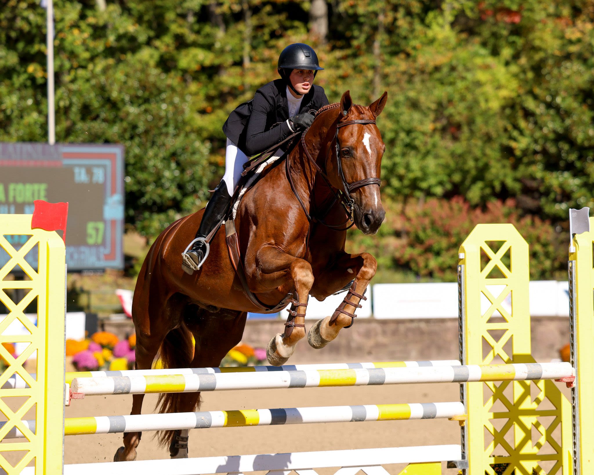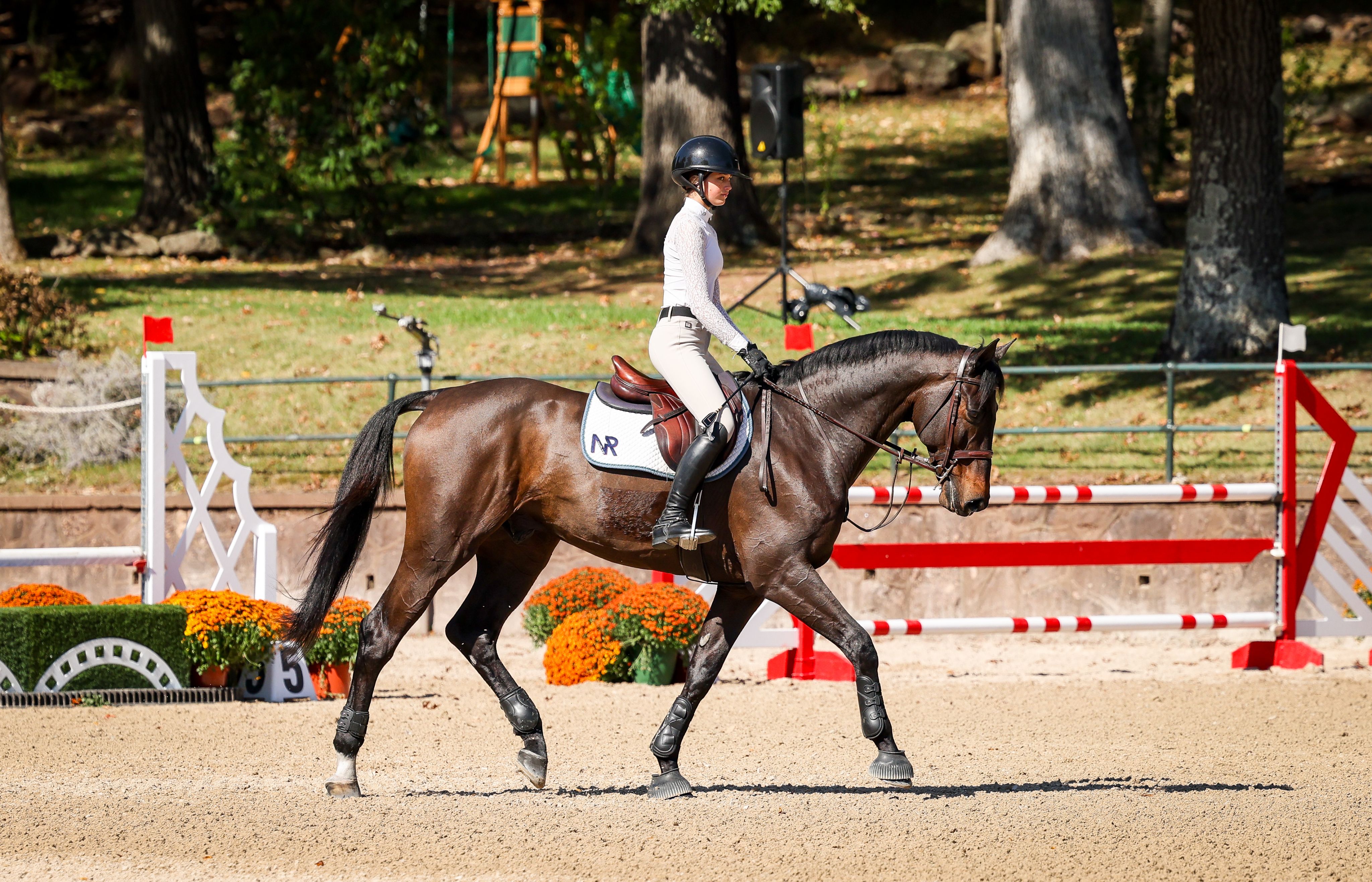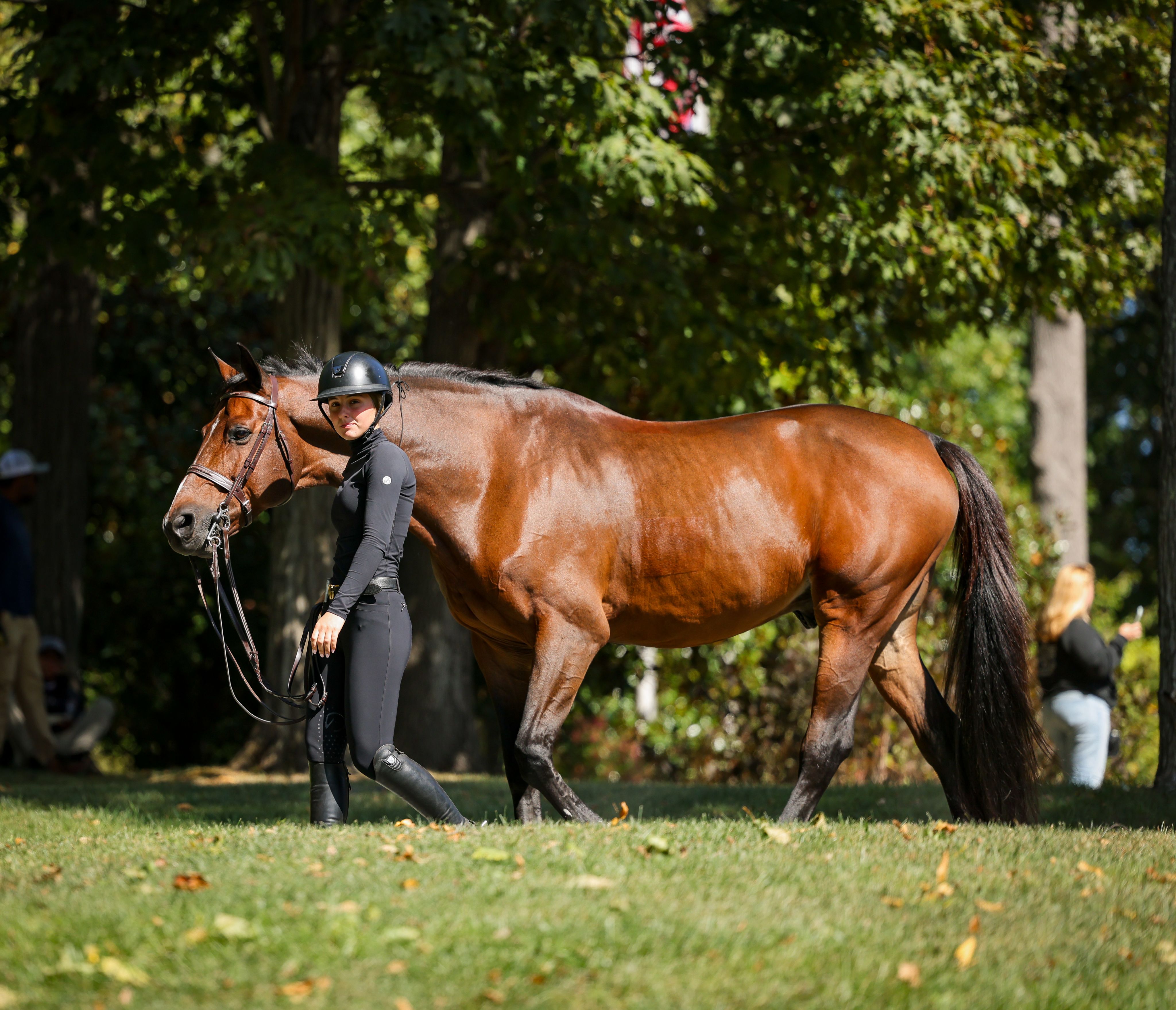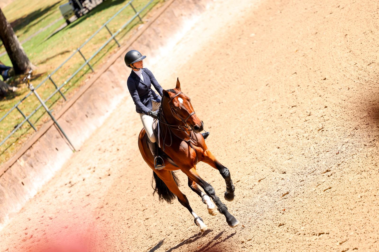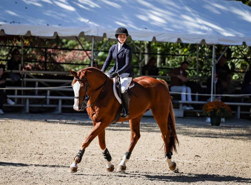 The final day of competition aimed to test each combination’s ability to navigate a jumper-style course while demonstrating the fundamental precision and technique of the traditional American style of riding. Phase III receives the highest score multiplier of the three phases, with a multiplier of two. The course, set at 1.15m in height, featured a technical course including several bending lines, unrelated distances, and an open water intended to evaluate adjustability, accuracy, and time management. Rudnicki piloted Qwantreau, a 2016 Belgian Warmblood gelding (Taran De La Pomme x R. Adermie) owned by Sadie Leon, and maintained her lead after yesterday’s phases. The combination earned a jumping score of 90 in Phase III and a total of 419 at the conclusion of Phase III. Rudnicki proceeded to notch the highest combined score in Phase IV, earning a 385 to ensure the win.