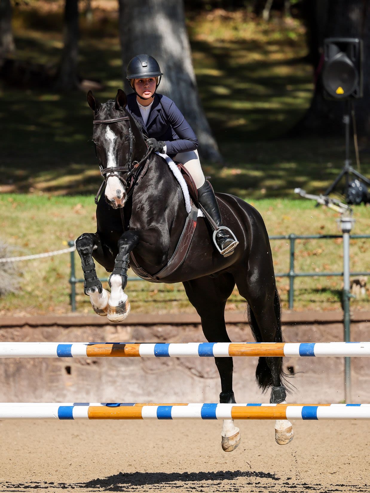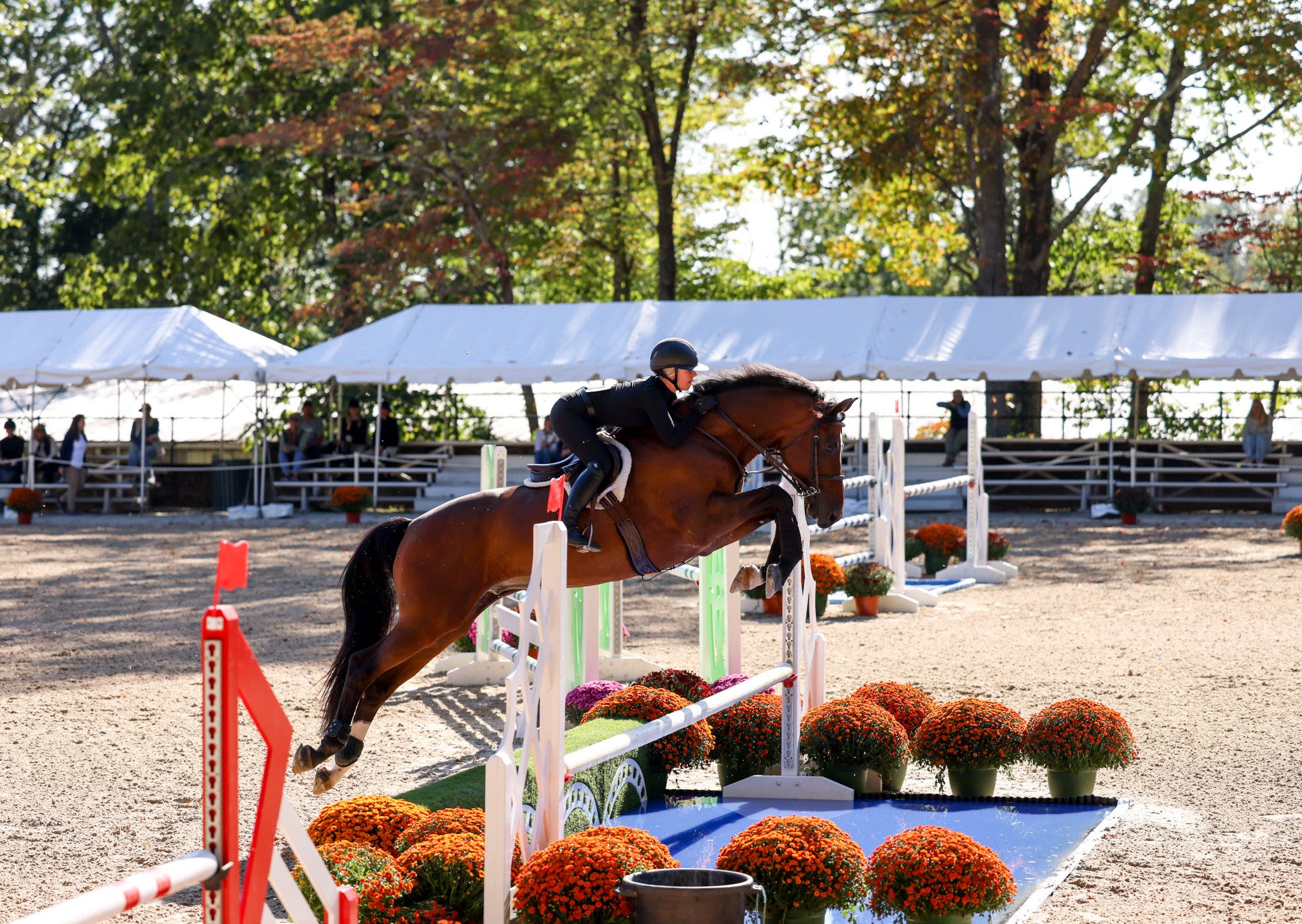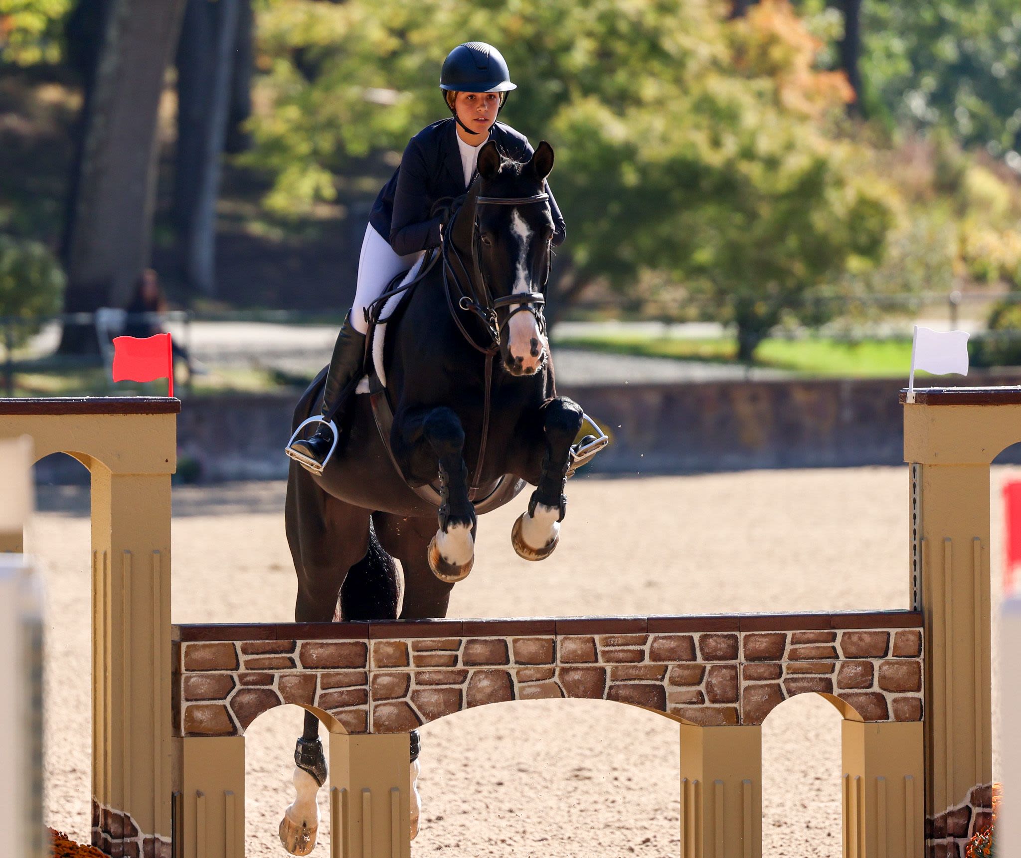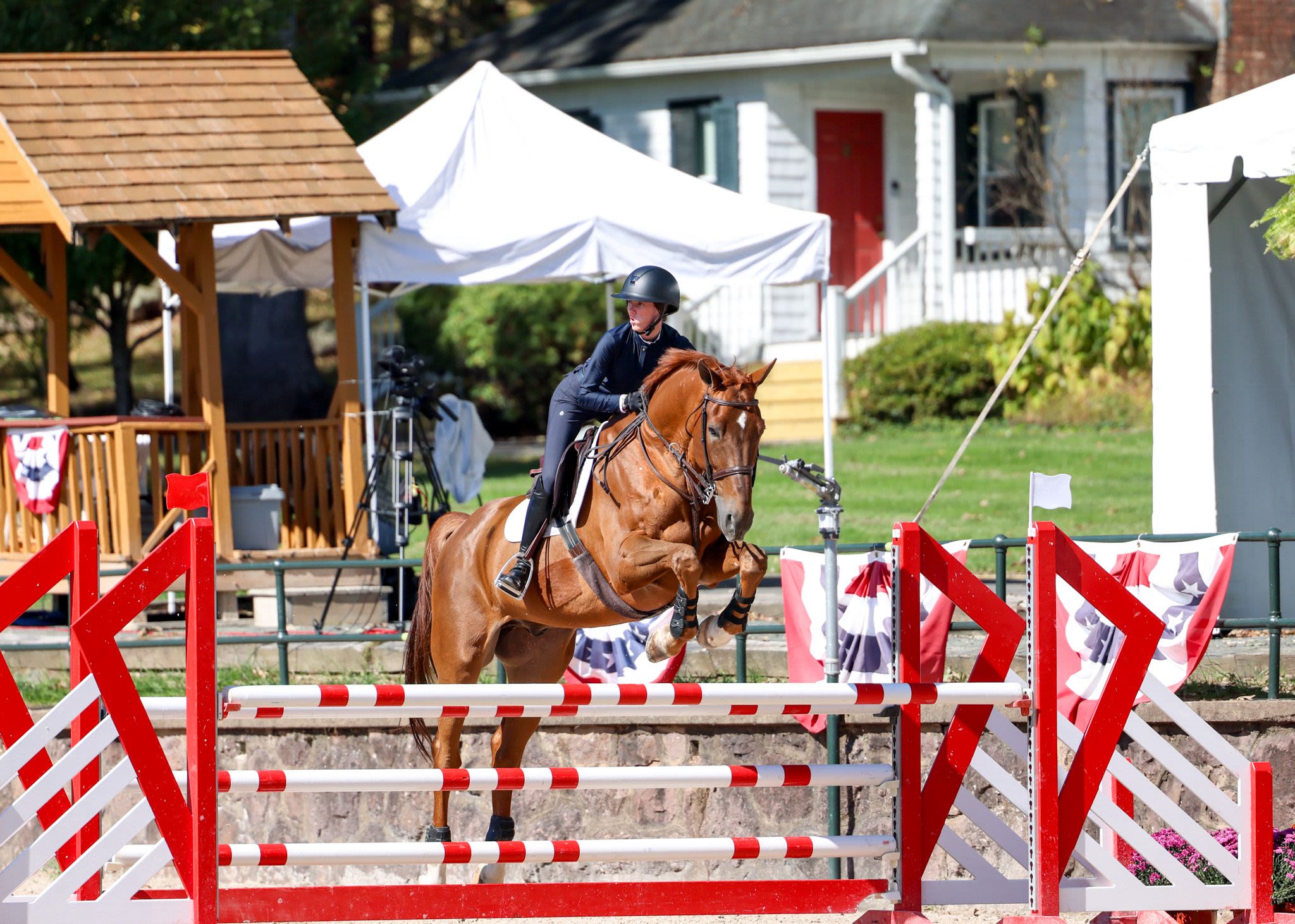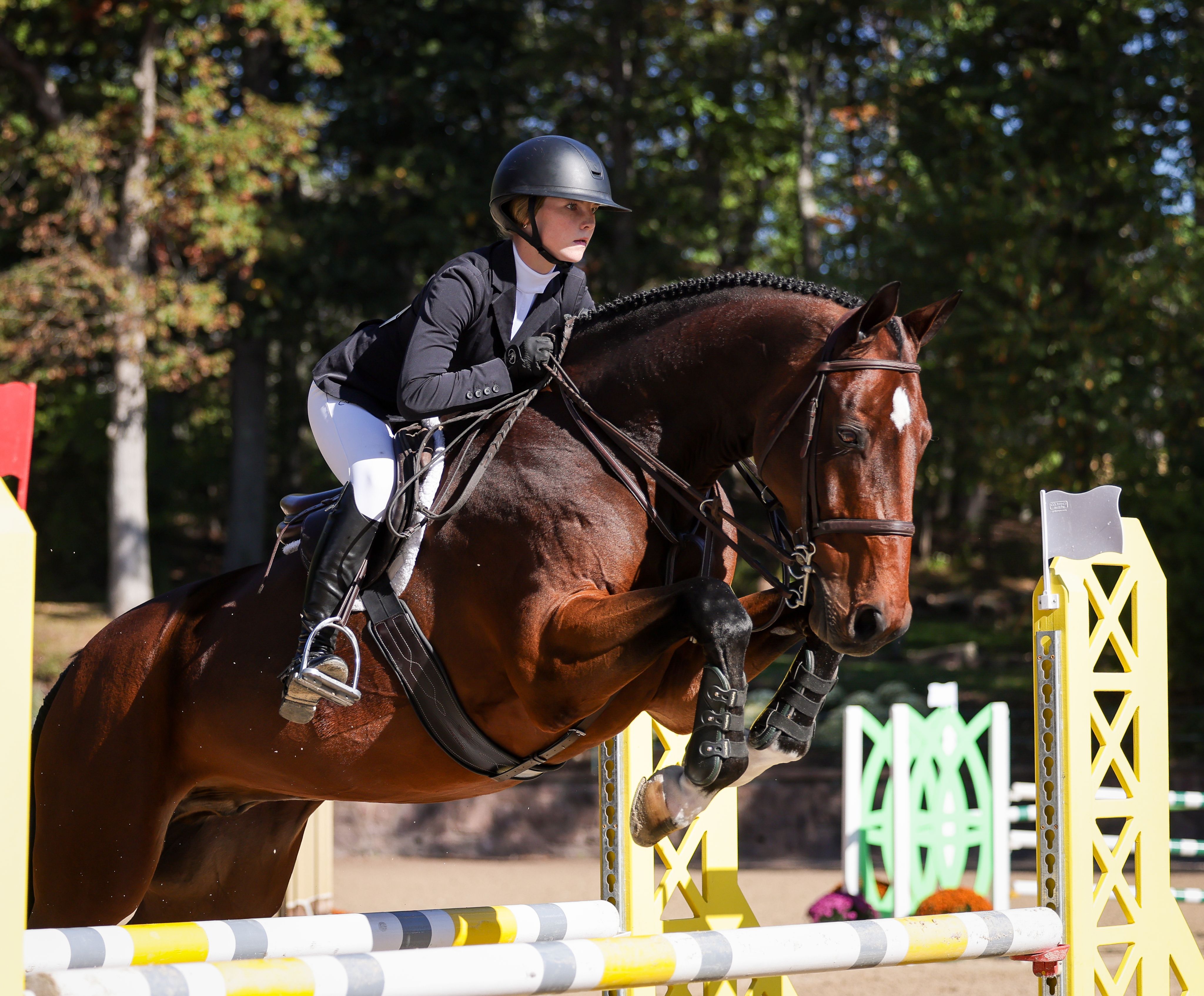 The final day of competition aimed to test each combination’s ability to navigate a jumper-style course while demonstrating the fundamental precision and technique of the traditional American style of riding. Phase III receives the highest score multiplier of the three phases, with a multiplier of two. The course, set at 1.15m in height, featured a technical course including several bending lines, unrelated distances, and an open water intended to evaluate adjustability, accuracy, and time management. Rudnicki piloted Qwantreau, a 2016 Belgian Warmblood gelding (Taran De La Pomme x R. Adermie) owned by Sadie Leon, and maintained her lead after yesterday’s phases. The combination earned a jumping score of 90 in Phase III and a total of 419 at the conclusion of Phase III. Rudnicki proceeded to notch the highest combined score in Phase IV, earning a 385 to ensure the win.
