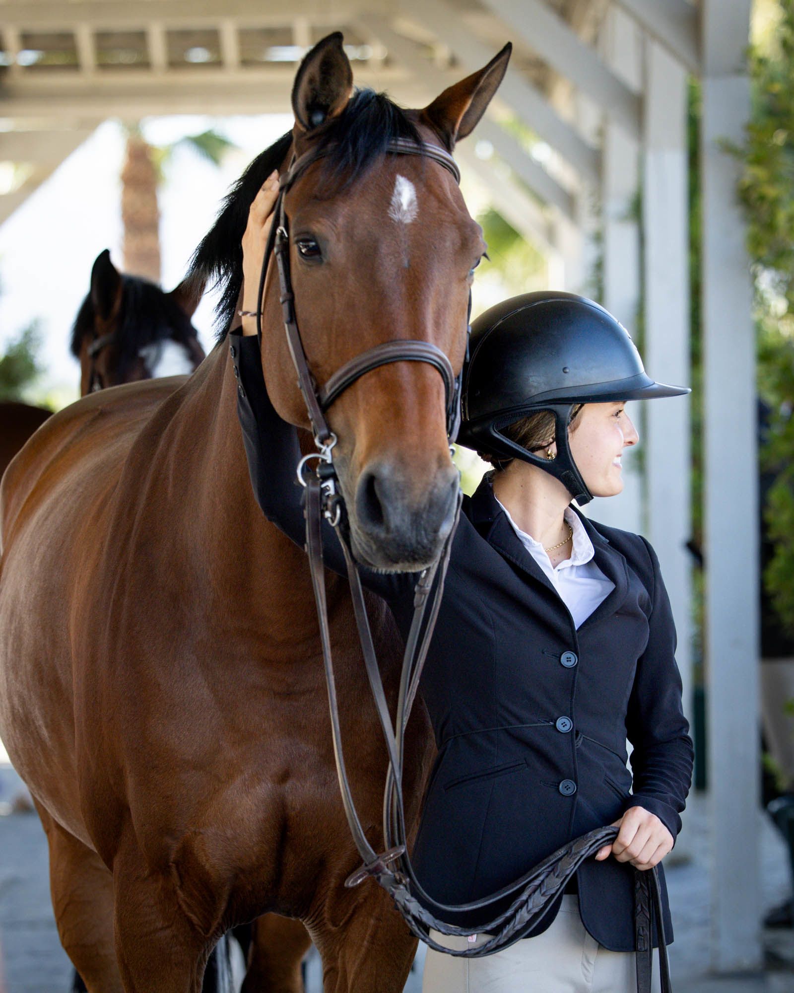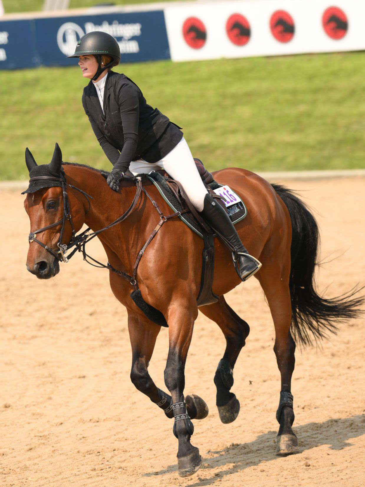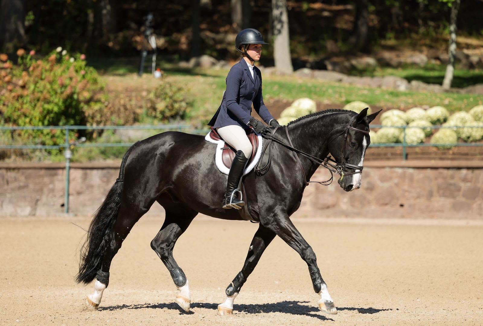 With his powerful jump and easygoing personality, Ike (Spartacus x Twister) is a horse who stands out in any ring. Known around the barn as a “sleepyhead,” the black gelding joined Amy Krebs’ family in September of 2023 and quickly became a barn favorite. After several successful years competing in the jumpers, Ike is now preparing to make his official career change this fall to better suit his naturally calm temperament and flexibility.